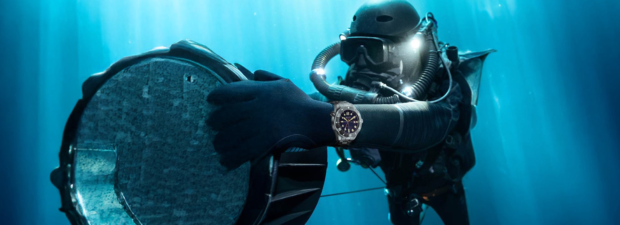 The professional-grade diver made to feel premium and perform under pressure: 1000M waterproof, Grade 5 titanium, tritium self-illumination.