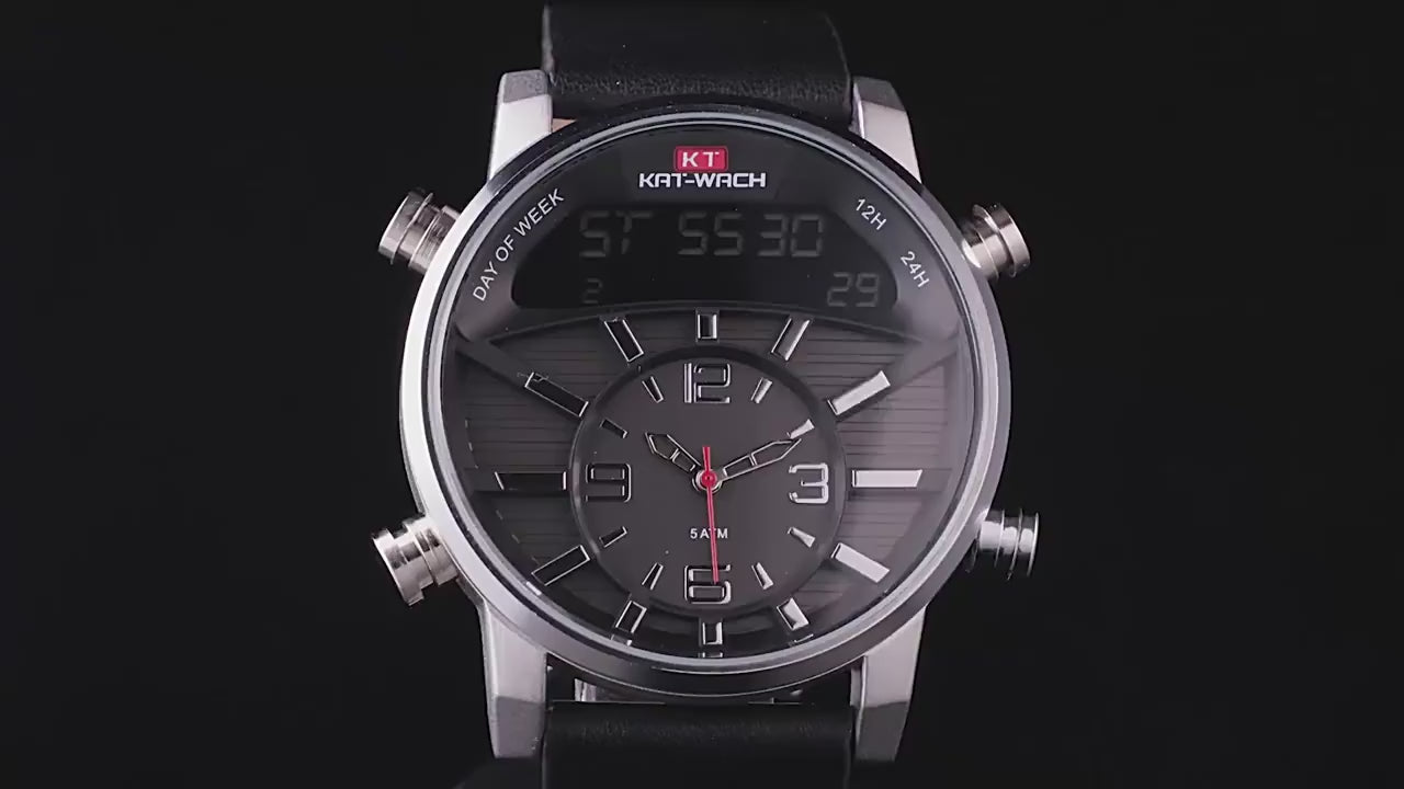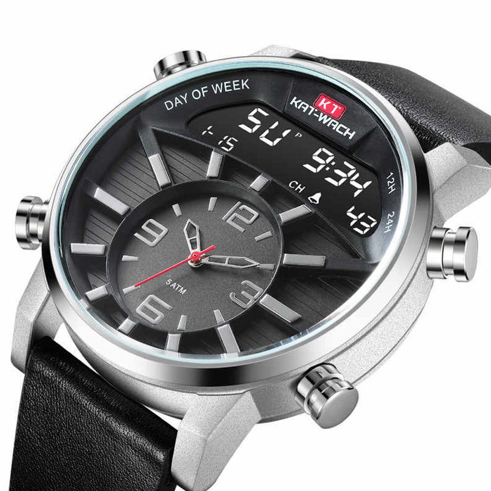 - LED Digital Display: Features a digital LED display for quick time-reading alongside the classic pointer dial for a hybrid experience.